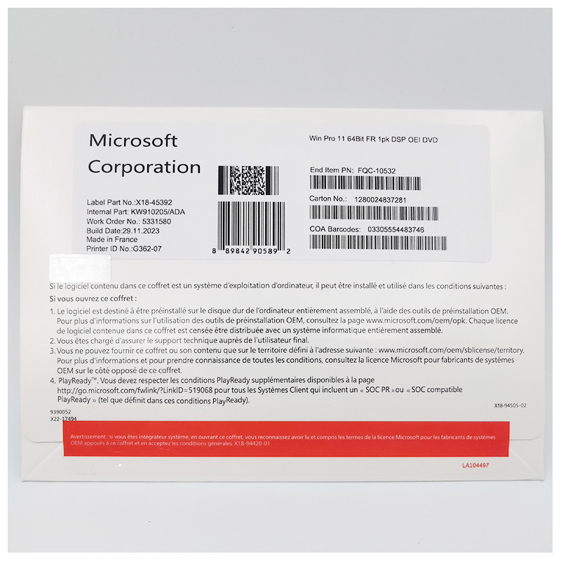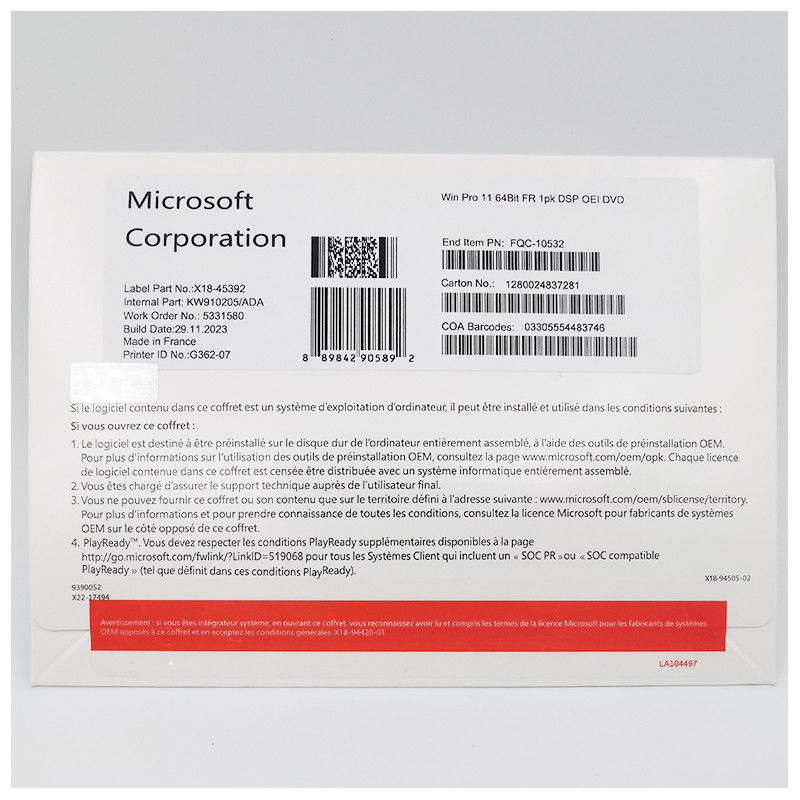 ハイライト: | 正規 Microsoft 64-Bit ライセンスパック,正規 Microsoft System Builder ライセンスパック,Windows 11 プロ OEM DVD |